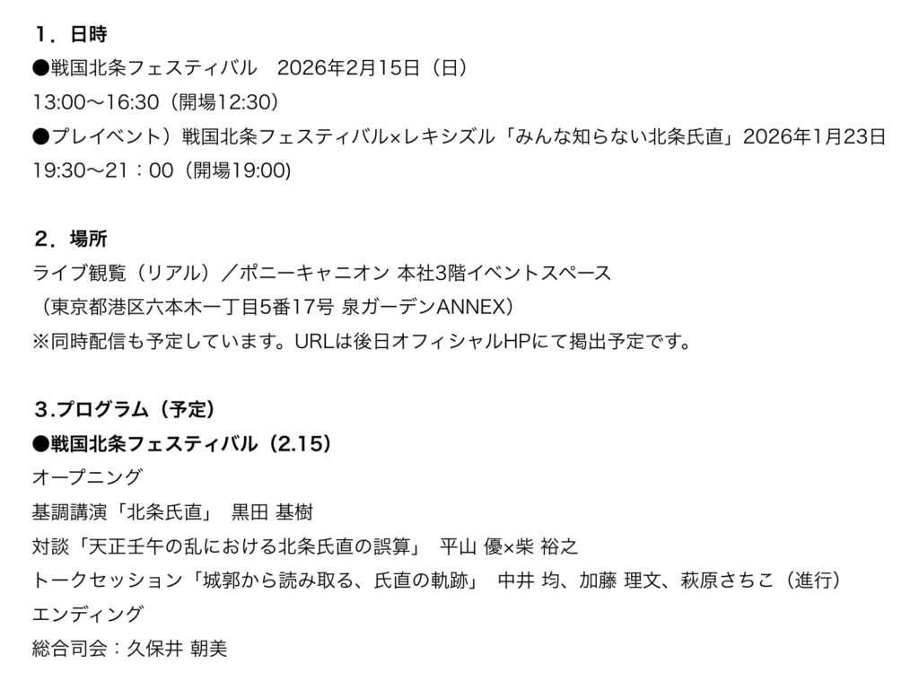ポニーキャニオン「戦国北条フェスティバル」プレスリリース